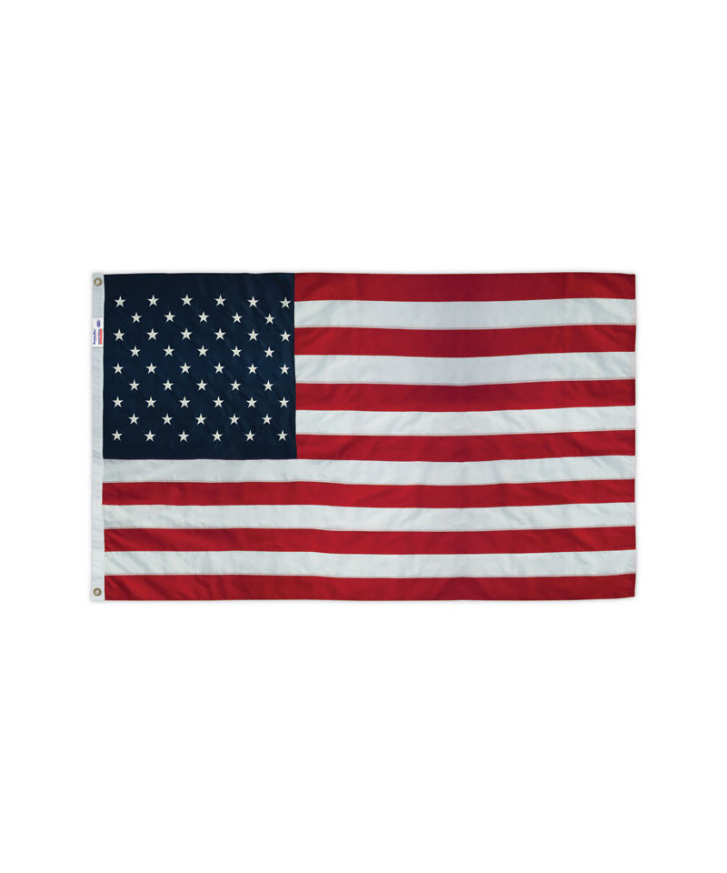 A premium United States flag made of durable, all weather, heavyweight nylon. Features sewn stripes and embroidered stars within white canvas headings and brass grommets for unparalleled resistance to weather and outdoor conditions.
