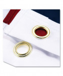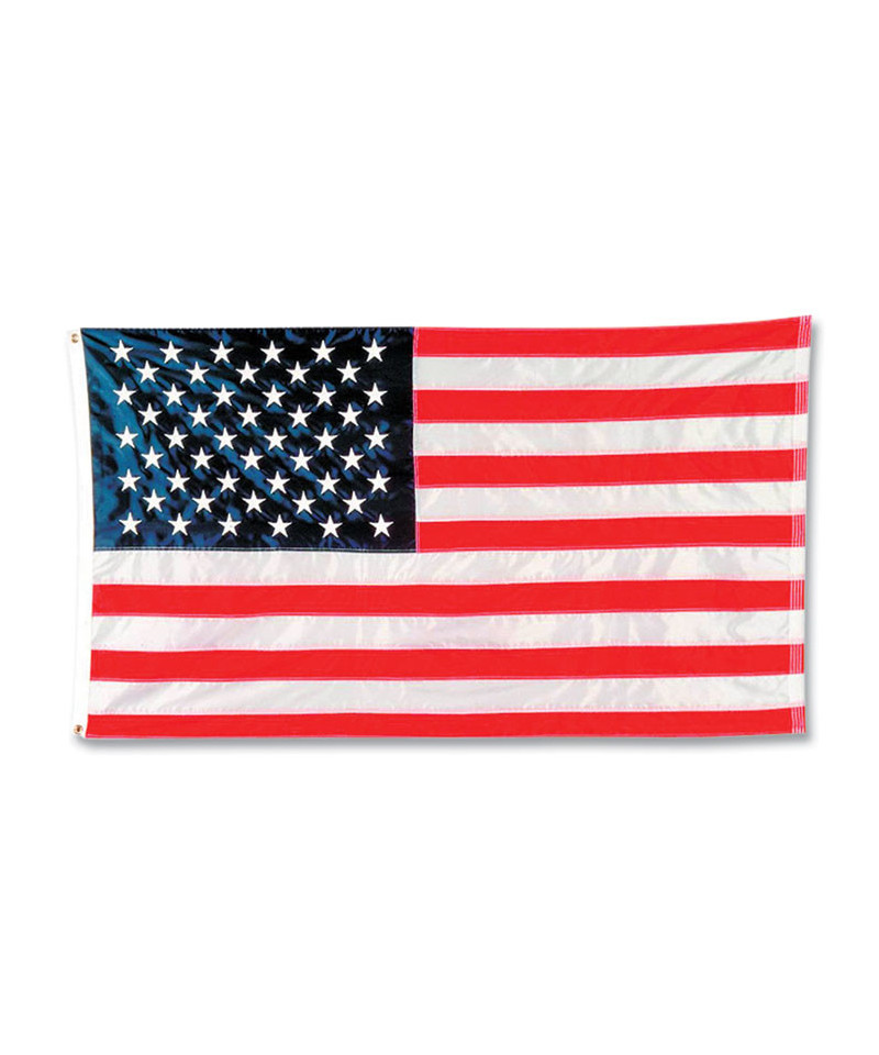 Display this American flag on a pole, holder or staff and stand. Made with durable nylon, stitched stripes and embroidered stars, this flag is built for long-lasting use indoors or outdoors. Has a canvas header with heavy-duty brass grommets for quick and reliable mounting.