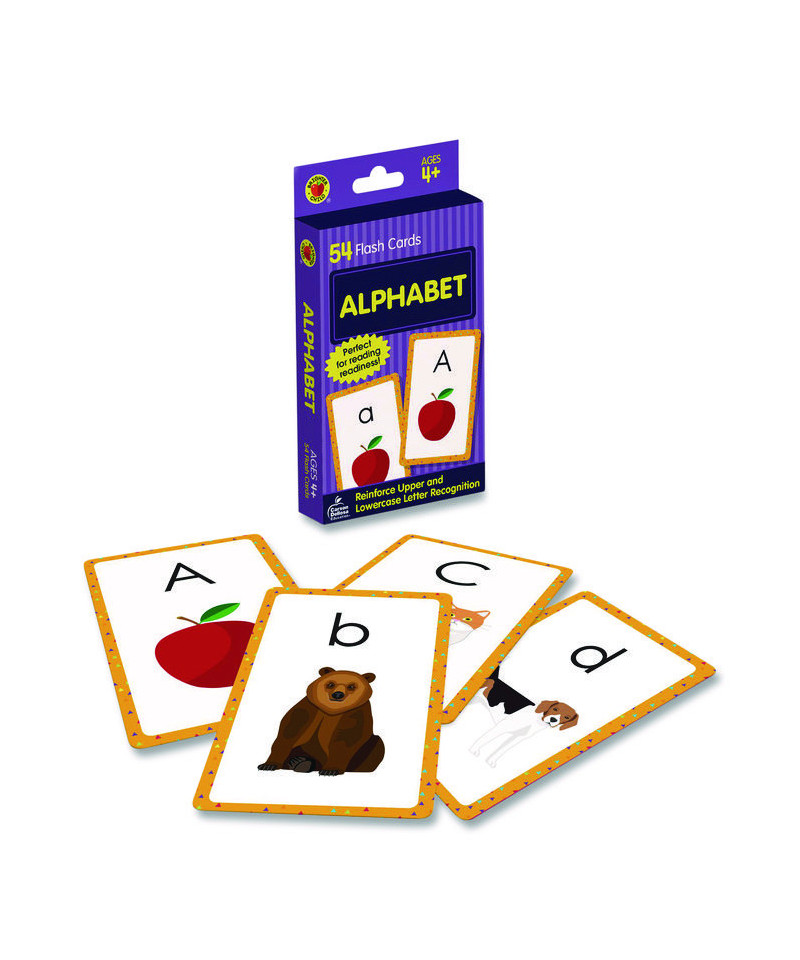 Alphabet Flash Cards present an easy, fun way for kids to practice essential skills. This 54-card set helps children recognize upper and lowercase letters, strengthen their phonics recognition, and more. This flash card box set includes cards with upper and lowercase letters (two cards for each letter), as well as two bonus game cards. With charming full-color illustrations picture cues of each letter, these flash cards are great reading readiness reinforcement. Flash cards allow kids to develop critical thinking, decision-making, turn-taking and other skills while allowing them to learn in a hands-on way.