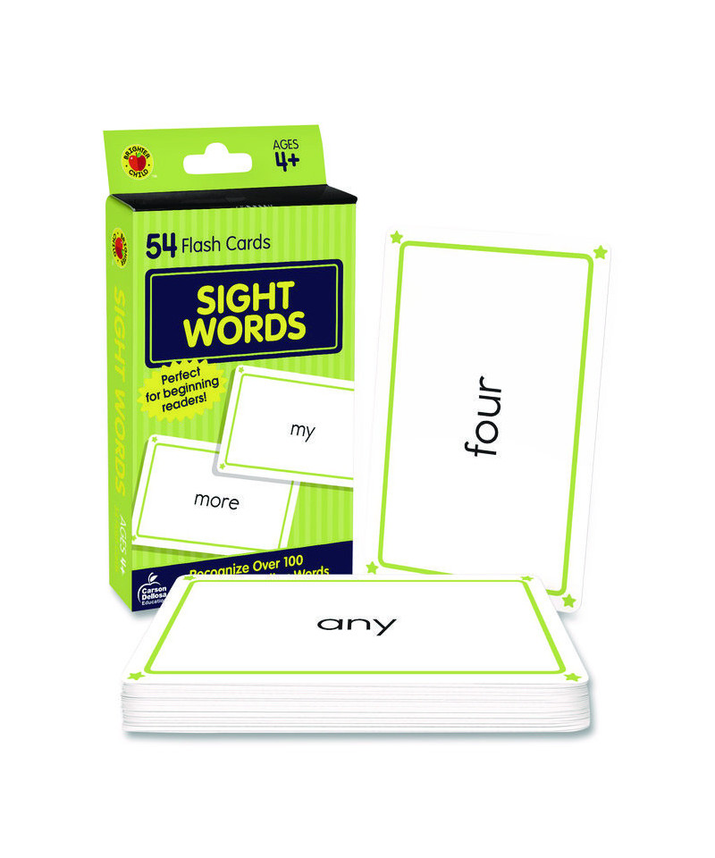Sight Words Flash Cards present an easy and fun way for kids to practice essential skills. This 54-card set includes 53 flash cards with more than 100 sight words, one word per side of each card. Large words are placed on a white background for easy reading, and a special bonus card offers creative game ideas that are designed to help reinforce learning. Flash cards allow kids to develop critical thinking, decision-making, turn-taking and other skills while allowing them to learn in a hands-on way.