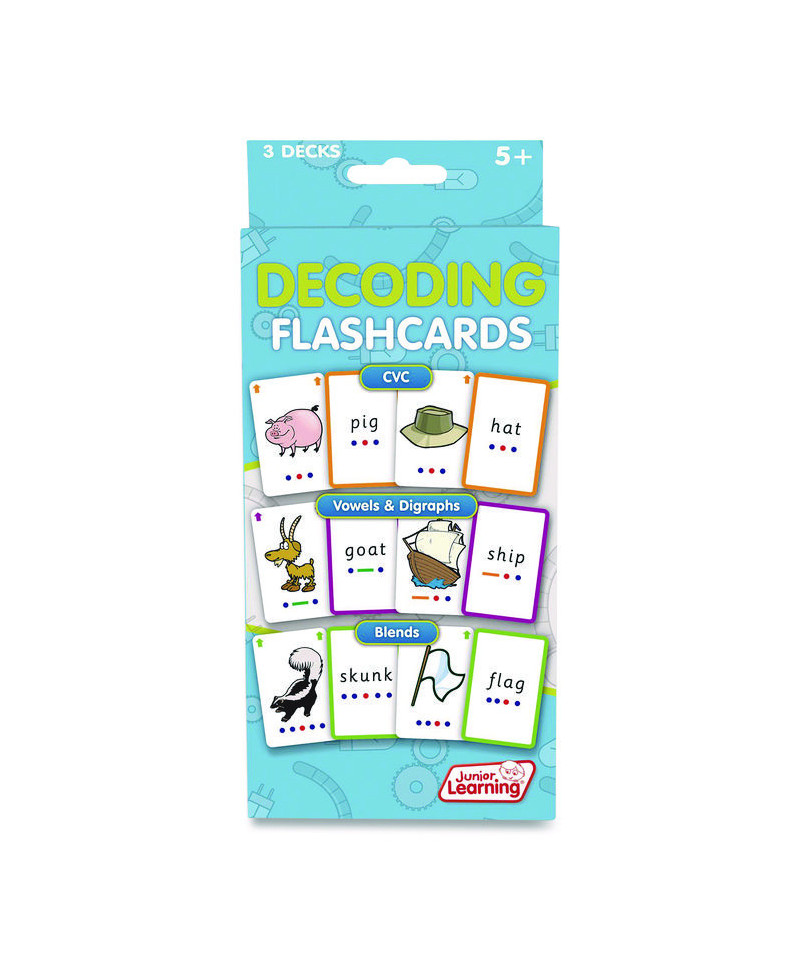 Enhance your child's decoding and language acquisition skills with our Decoding Flashcards. This set includes three decks of 54 cards each (162 cards total), covering topics such as CVC (consonant-vowel-consonant), vowels, digraphs and blends. Each card features common nouns and sound buttons to assist in decoding, making it a perfect activity for both independent and guided learning. Designed for children aged 5 and up and suitable for grades K-1, these flashcards also work with our Flashbot (sold separately) for a more interactive experience. Help your child achieve fast, automatic recall of words today!