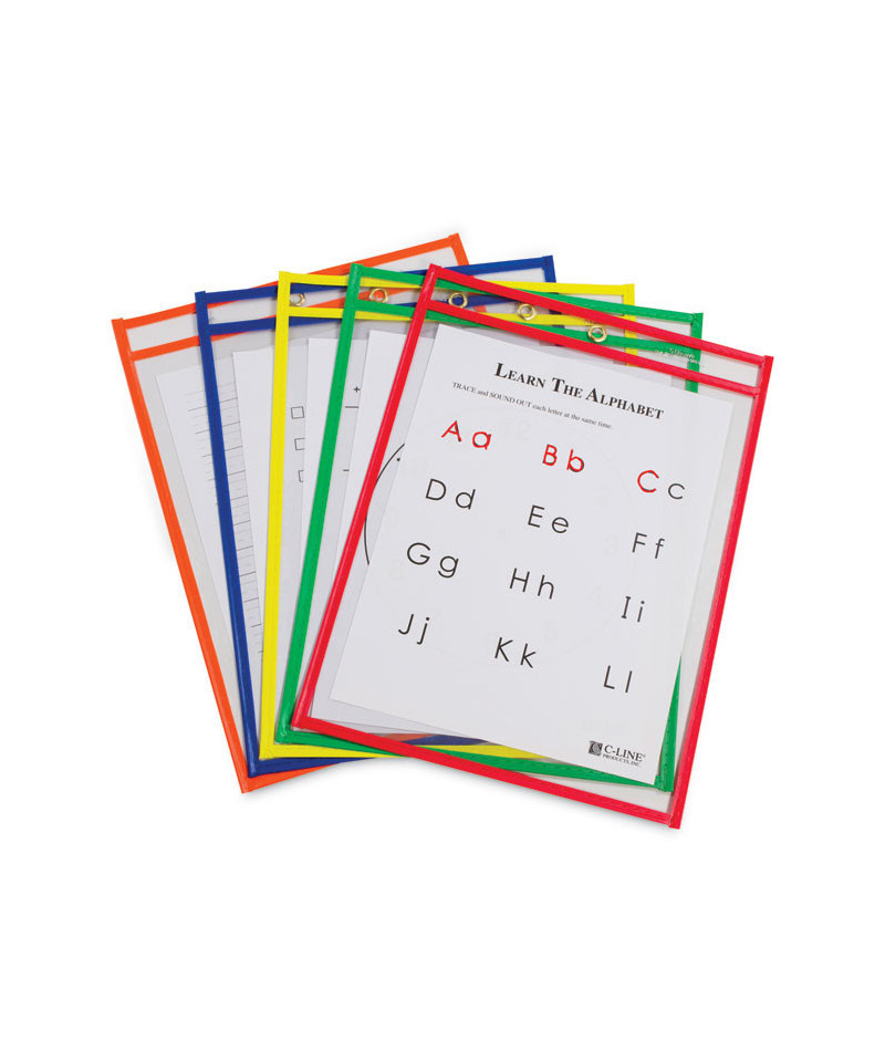 Reusable Dry Erase Pockets help to improve students' skills. Anyone can easily practice math problems, letters, writing skills and more. Save paper by eliminating the need to copy worksheets over and over again. Reusable super heavyweight pocket lasts a long time. Convenient eyelet for hanging. Easily clean with a soft dry cloth or tissue when used with a low-odor dry erase marker or dry erase crayon (not included).