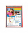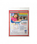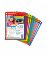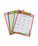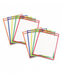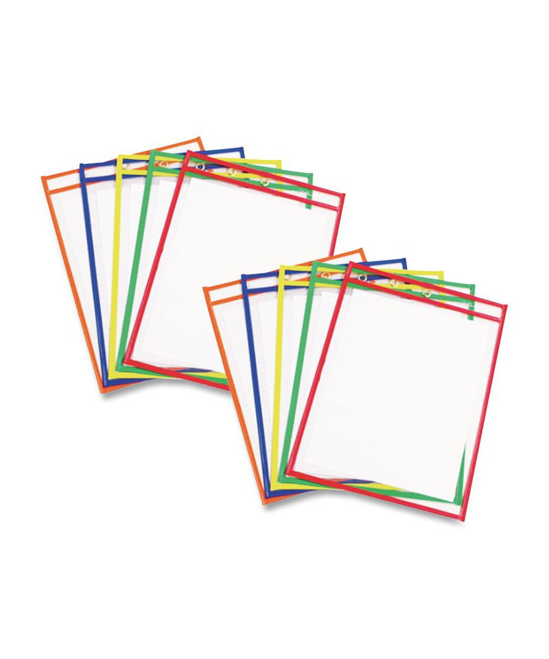 Reusable Dry Erase Pockets, Super Heavy-Duty, Top Load 9 x 12 Insert, Clear Front, Assorted Border Colors, 10/Pack