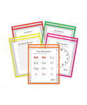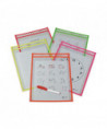 Reusable Dry Erase Pockets, Super Heavy-Duty, Top Load 9 x 12 Insert, Clear Front, Assorted Neon Border, 25/Box