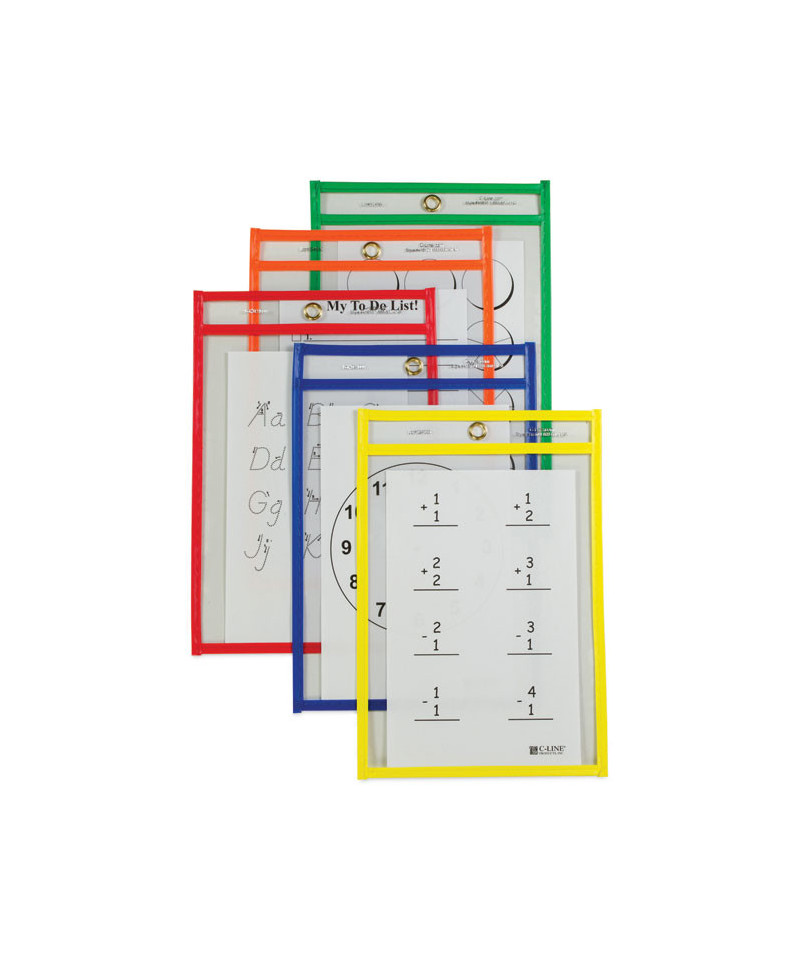 Reusable Dry Erase Pockets help to improve students' skills. Anyone can easily practice math problems, letters, writing skills and more. Save paper by eliminating the need to copy worksheets over and over again. Reusable super heavyweight pocket lasts a long time. Convenient eyelet for hanging. Easily clean with a soft dry cloth or tissue when used with a low-odor dry erase marker or dry erase crayon (not included).
