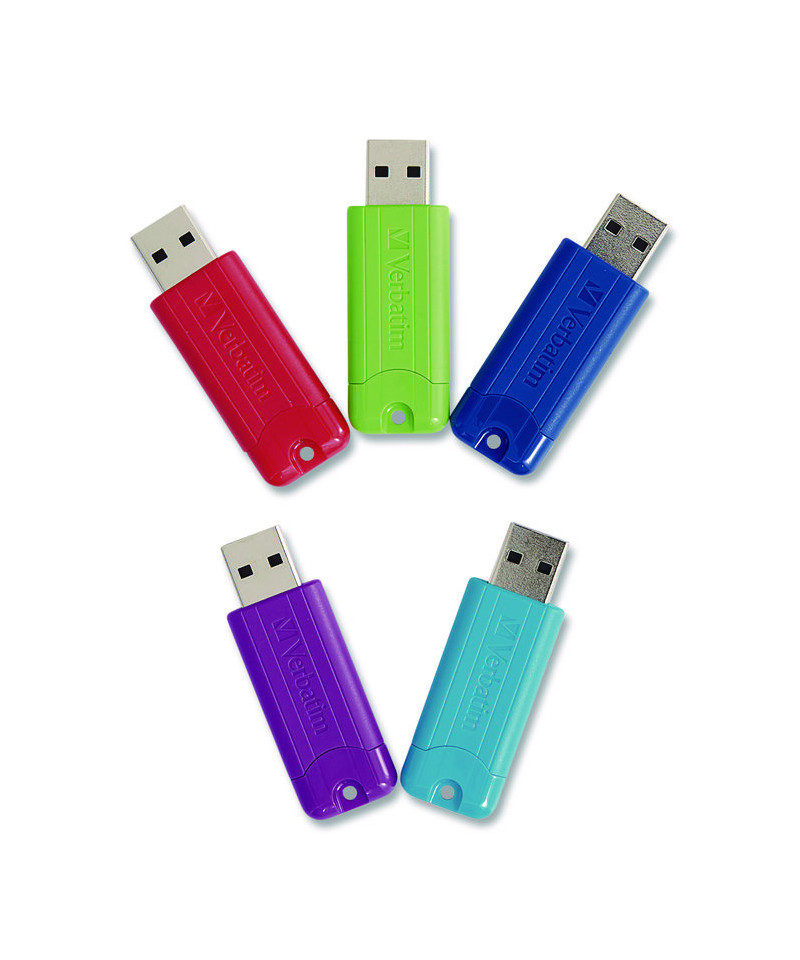 PinStripe USB 3.0 Flash Drive, 32 GB, Assorted Colors, 5/Pack