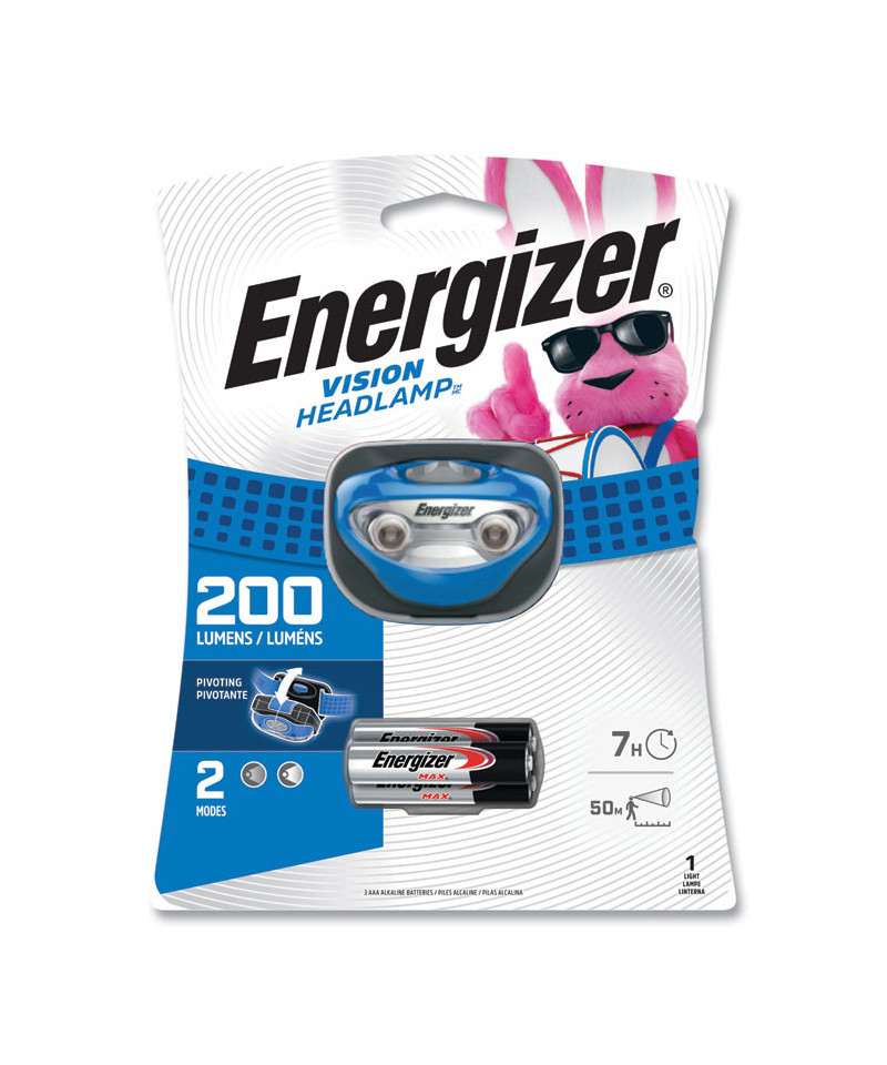 The Energizer® Vision HD headlight is another innovative headlight solution from the Energizer® premium headlight line. With the latest LED technology, users get an extremely bright, lightweight hands-free solution with ample run time capability. Patented optics offer exceptional direct and peripheral vision, making the Energizer® Vision HD a perfect light for home, work and outdoor activities. Thanks to the advanced dimming feature, users can control the intensity of light from 100% to 10%., and enjoy Next Push Off technology to avoid unnecessary switch cycles. With an adjustable head strap, water-resistant design and pivoting head to direct light exactly as needed, this headlight is another way Energizer® continues to deliver innovative lighting solutions.Allows you to complete plumbing, electrical and other tasks requiring both hands. Mounts comfortably and securely on head or hard hat with headband. LED lights with different illumination settings to control brightness and runtime. Beams produce spotlight or floodlight. Swivel head to adjust aim. Can be worn for long periods of time. Batteries included.