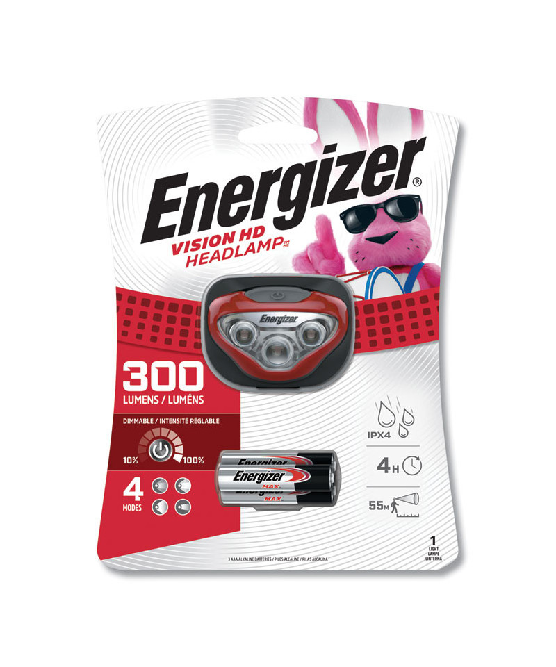 The Energizer® Vision HD headlight is another innovative headlight solution from the Energizer® premium headlight line. With the latest LED technology, users get an extremely bright, lightweight hands-free solution with ample run time capability. Patented optics offer exceptional direct and peripheral vision, making the Energizer® Vision HD a perfect light for home, work and outdoor activities. Thanks to the advanced dimming feature, users can control the intensity of light from 100% to 10%., and enjoy Next Push Off technology to avoid unnecessary switch cycles. With an adjustable head strap, water-resistant design and pivoting head to direct light exactly as needed, this headlight is another way Energizer® continues to deliver innovative lighting solutions.Allows you to complete plumbing, electrical and other tasks requiring both hands. Mounts comfortably and securely on head or hard hat with headband. LED lights with different illumination settings to control brightness and runtime. Beams produce spotlight or floodlight. Swivel head to adjust aim. Can be worn for long periods of time. Batteries included.