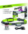 Energizer Pro Series Multi-color Hybrid Headlamp offers convenient hands-free operation that is 12x brighter than standard LED technology. This work headlamp illuminates 650 lumens and spans the length of a stadium field. Seven modes, including high, medium, low, green, red and red flashing, let you choose the right setting for any job, and the advanced dimming feature lets you adjust the intensity of the light between 10% and 100%. Red and green LED modes allow you to preserve night vision, and high CRI LED offers clear color definition. The hybrid powered light runs on four AAA batteries or a single rechargeable battery. This LED headlamp is built to last, with a shatterproof lens and durable body that can withstand a 6.5-foot drop. Rated IP67 waterproof and dustproof, this work light is the perfect solution for any job. Use the comfortable straps to get the perfect fit, and aim the beam where you need it with the pivoting head. This light will shine bright for up to 35 hours on low (using the rechargeable lithium-ion battery) to last through any project. Trust in Energizer to deliver the powerful performance we promise - Energizer lights are tested and adhere to strict, reliable ANSI standards.