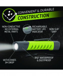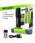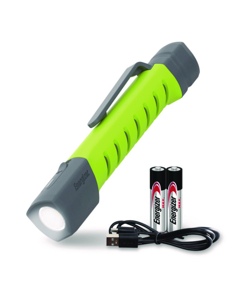 The Energizer Hybrid Pro Series Handheld Inspection Light has the performance and durability you need to meet the tough standards and demands of your job. This handheld flashlight features powerful LED technology with high CRI for high-definition color clarity to enhance your safety with increased visibility. It is also non-conductive with no external metal parts and hybrid-powered to ensure you always have light when you need it. You can power up this hybrid flashlight with 2 AAA batteries (included) or recharge via USB (charging cable included). This LED light puts off up to 350 lumens of brightness and has a beam distance of up to 40 meters. Durable, waterproof and dustproof, this LED flashlight withstands demanding conditions. The compact design includes a versatile clip for secure pocket storage and a non-slip grip for easy carry. Plus, a pouch is included to attach to your belt while easily storing your work light, batteries and charging cable all in one place. The green color lets you easily find this bright flashlight in your toolbox. Trust in Energizer to deliver the powerful performance we promise Energizer lights are tested and adhere to strict, reliable ANSI standards.