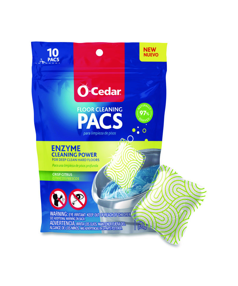 Take the guesswork out of cleaning your floors with the convenient and perfectly portioned O-Cedar® PACS. Mixed with 1.6 gallons of water, each PAC has the deep cleaning power to clean every hard-surface floor in your home, including hardwood, tile, vinyl and laminate. Simply drop one O-Cedar® PAC into your EasyWring or RinseClean bucket, and you'll see the bubbles fizz. Then, it's time to mop! Naturally-derived enzymes dissolve stubborn dirt and grease for a streak-free clean, without any harsh chemicals.