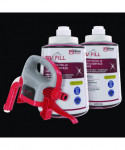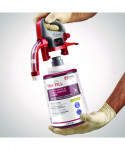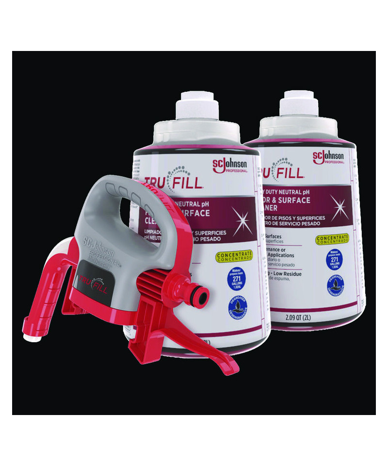 Take dilution control off the wall with the TruFill Dispensing System. TruFill offers easy-to-use, quick-change cartridges that automatically blend concentrates with water to provide worry-free dilution. The rugged design easily attaches to buckets and auto scrubbers for simplified dilution mixing into these high-volume vessels. The TruFill hose (sold separately) attaches easily to the dispenser with a quick-connect adapter (sold separately), and the twist-lock design securely attaches the dispenser head to the no-spill 2 L concentrate cartridge, creating a system that delivers up diluted solution.