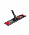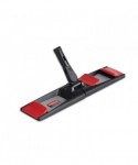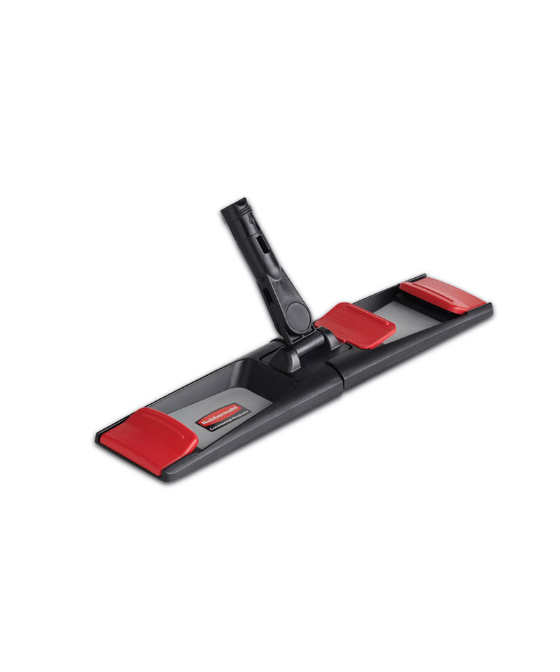Compatible with HYGEN Quick-Connect handle system. Frame folds in half when foot pedal is activated for tab mop function to be wrung out in mop bucket, or pocket mop function to be easily connected and released. Frame does not require adjustment to alternate between two different mopping functions. Red clips are built to withstand up to 24 lbs of force for a strong connection to compatible mop pads.