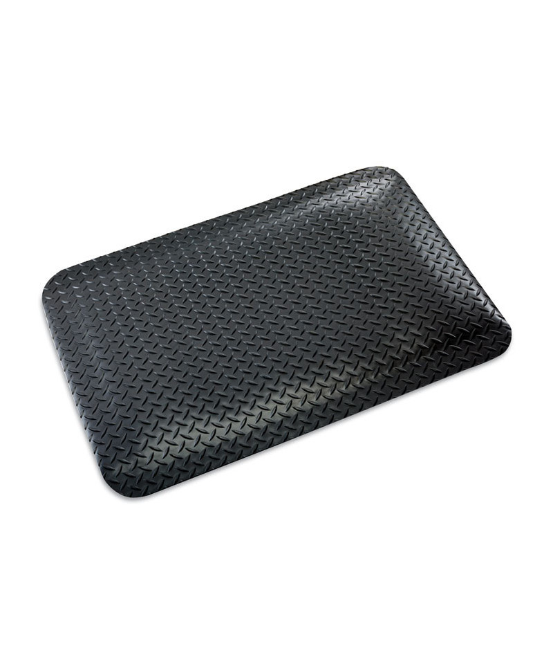 Make safety and comfort the standard practice at your workplace. These mats feature a durable, slip-resistant surface with a diamond pattern texture to help reduce the risk of falling. Industrial-grade PVC foam backing fused to the top surface provides the comfort. Resistant to most common fluids and chemicals. Beveled edges help increase safety by reducing the risk of tripping.