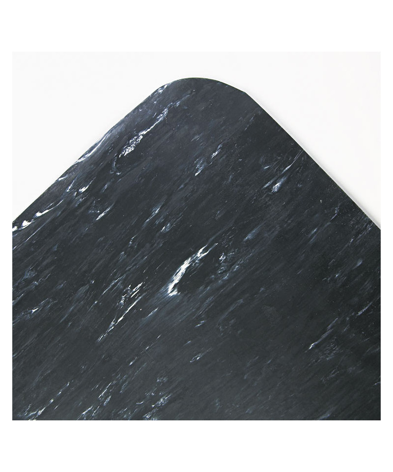 When the job calls for spending a lot of time on your feet, it helps if you're on a comfortable surface. The 3/32" thick top fused to thick sponge foam helps relieve some of the discomfort of standing for extended periods of time. Features beveled edges and rounded corners to keep mat flat and help avoid dangerous falls.