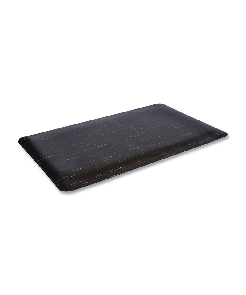 Smooth marbleized rubber surface with foam backing offers an attractive and easy to clean mat. Resistant to oil, grease and all common acids and alkalis as well as organic solvents. Safety beveled edges. Puncture-resistant rubber surface for better traction, stability and durability. Foam PVC sponge fused to smooth marble pattern surface. Easy to clean, sweep clean or damp mop. For interior dry areas such as factories, workstations, cashier's area, schools, medical and pharmacies.