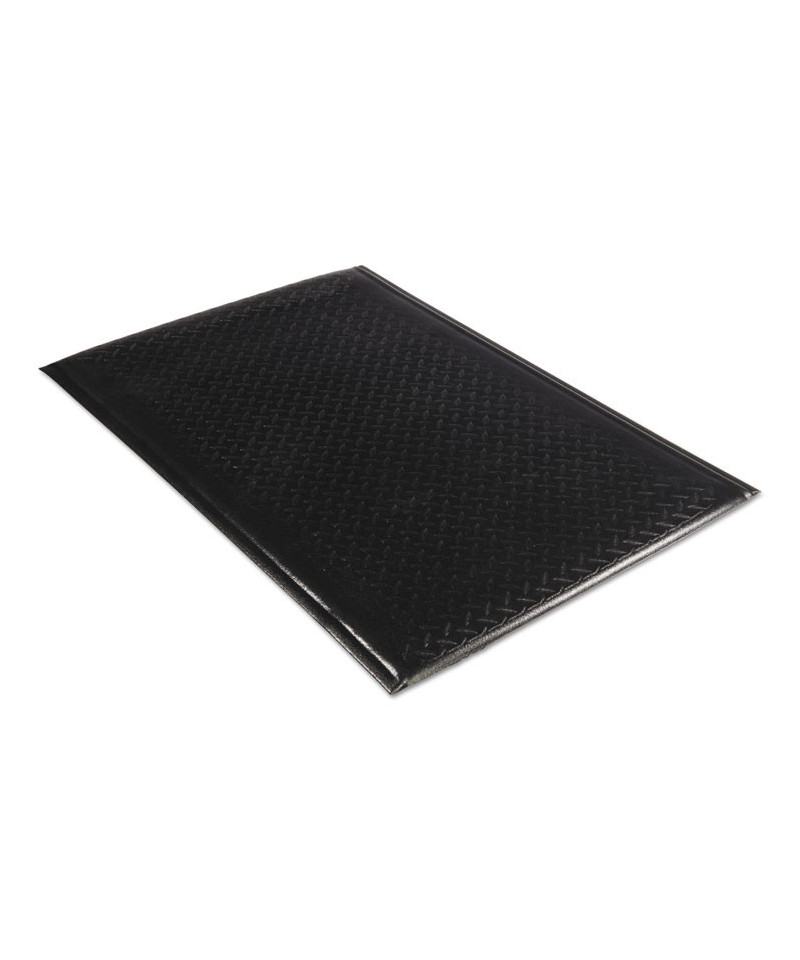 These commercial grade anti-fatigue mats feature a vinyl foam construction to ensure higher durability and better resilience. The pebble surface is pleasing to stand on and reduces fatigue and discomfort. Constructed from a vinyl/nitrile blend for maximum comfort and resilience. The beveled edges allow for a smooth transition from floor to mat.