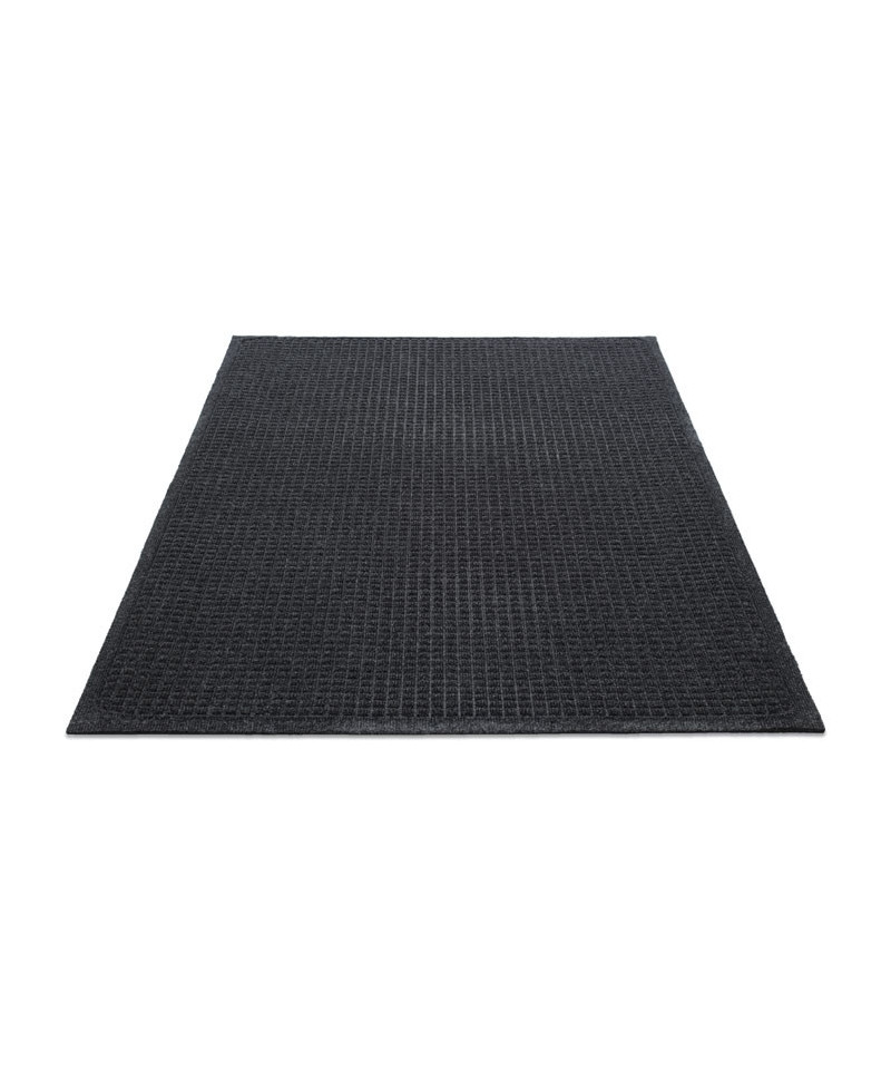 This mat's carpeted surface is made from PET plastic bottles, and the all-rubber backing is made from used tires. Bi-level construction traps dirt and moisture below the surface so your interior spaces stay clean and dry. The durable rubber backing is slip-resistant to keep mat in position. Easy-to-clean—just sweep, shake out or vacuum. Recommended for hard surface floors and low-pile carpet entryways, hallways and lobbies.