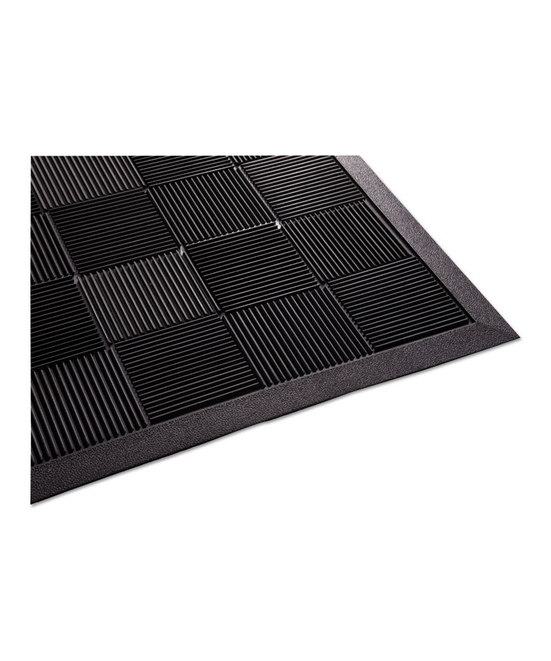 Ideal for any outdoor entryway, the Guardian Parquet Scraper Mat's superior molded square pattern features flexible blades to scrape shoes clean while also adding anti-fatigue properties. Once shoes are wiped clean, any debris is then trapped at the mat's base while excess water is stored in a large pan, making these mats an excellent choice for the first step in your floor protection system. Made of 100% rubber, they're also easy to clean—just shake them out, hose off and dry.