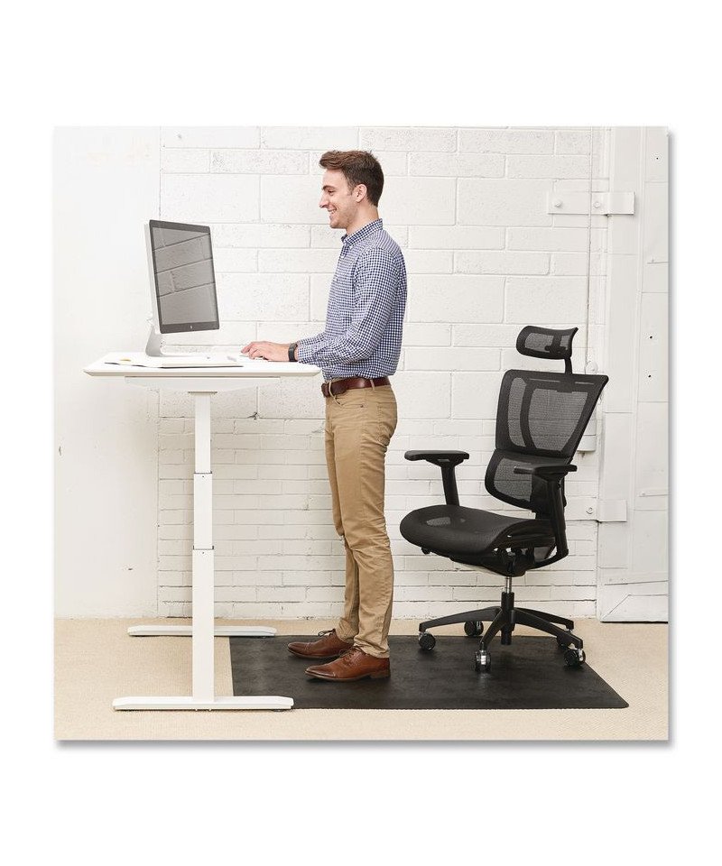 This dual purpose cushioned mat combines the comfort and ergonomic benefit of an anti-fatigue mat with the smooth rolling surface of a traditional deflecto® office chair mat. Designed for use with standing desks and adjustable height workstations. The mat is ideal for users looking to transition effortlessly from sitting to standing. With 3/8" thick anti-fatigue support foam, this mat is comfortable on the feet, promotes wellness and reduces fatigue while standing. It also protects flooring from wear and tear caused by wheeled office chairs. The mat can also be used to cover worn, damaged or stained flooring.