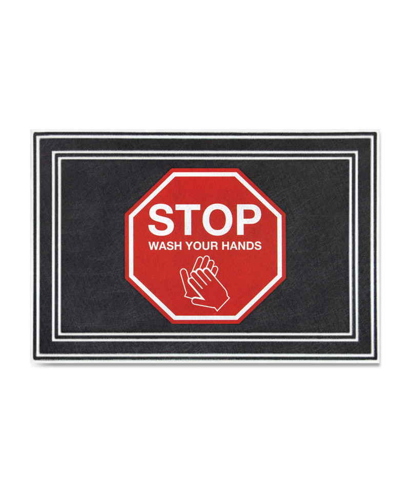 Social Distancing Message Mats, White/Red Printed Message: Stop - Wash Your Hands, 36" x 24", Charcoal Gray Surface