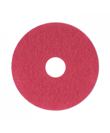 3M™ Red Buffer Pads 5100 can be used for everyday cleaning, remove light soil, scuff marks and black heel marks. Its regular use reduces the frequency of scrub-and-recoat operations, enhancing the appearance of your finished floors with reduced labor and materials costs. Fibers throughout the pad are uniformly coated with a high-quality resin and fine cleaning particles, providing good performance throughout the pad's long life. Open-web construction means this washable, reusable pad resists clogging and loading. Conformable fibers provide maximum pad-to-floor contact. Pads are reversible. For rotary swing machines and automatic floor machines running at low speed (175-600 rpm).