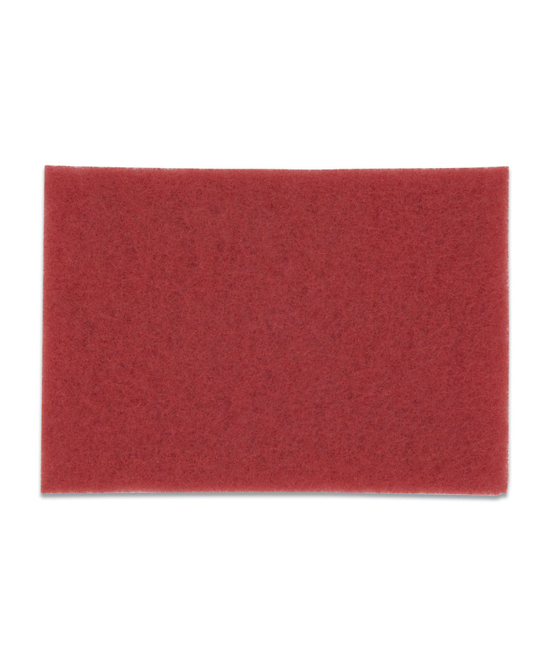 3M™ Red Buffer Pads 5100 can be used for everyday cleaning, remove light soil, scuff marks and black heel marks. Its regular use reduces the frequency of scrub-and-recoat operations, enhancing the appearance of your finished floors with reduced labor and materials costs. Fibers throughout the pad are uniformly coated with a high-quality resin and fine cleaning particles, providing good performance throughout the pad's long life. Open-web construction means this washable, reusable pad resists clogging and loading. Conformable fibers provide maximum pad-to-floor contact. Pads are reversible. For rotary swing machines and automatic floor machines running at low speed (175 to 600 rpm).