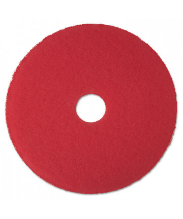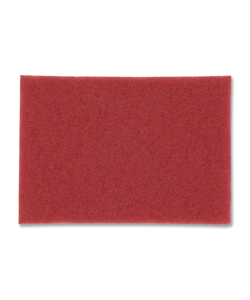 3M™ Red Buffer Pads 5100 can be used for everyday cleaning, remove light soil, scuff marks and black heel marks. Its regular use reduces the frequency of scrub-and-recoat operations, enhancing the appearance of your finished floors with reduced labor and materials costs. Fibers throughout the pad are uniformly coated with a high-quality resin and fine cleaning particles, providing good performance throughout the pad's long life. Open-web construction means this washable, reusable pad resists clogging and loading. Conformable fibers provide maximum pad-to-floor contact. Pads are reversible. For rotary swing machines and automatic floor machines running at low speed (175 to 600 rpm).