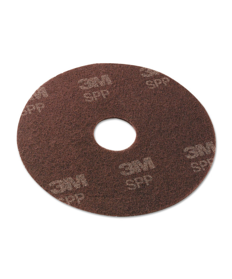 The Scotch-Brite™ Surface Preparation Pad from 3M effectively removes floor finish with only neutral cleaners or water, providing aggressive scrubbing and leaving a uniformly dull surface ready for recoating. Specialized mineral abrasives strip, clean, and scuff, preparing the floor surface for optimal bonding of finish. Nylon fibers are uniformly coated throughout the pad with high-quality resin and mineral abrasives. The pad is available in round and rectangular sizes and can be run on auto-scrubbers, swing machines, and rectangular floor machines. It is appropriate for use on a variety of finish-coated floorings, including wood, vinyl tile, sheet vinyl, marble, terrazzo, and concrete. In some applications, the pad can be used with a red backer pad for better conformability. Scotch-Brite™ Surface Preparation Pads are engineered to reduce chemical strippers and labor hours associated with preparing floor surfaces for refinishing. The 0.4 inch thick pad is designed to be used on both sides, typically providing 5,000 square feet of use per side in wet applications, for a total of 10,000 square feet.
