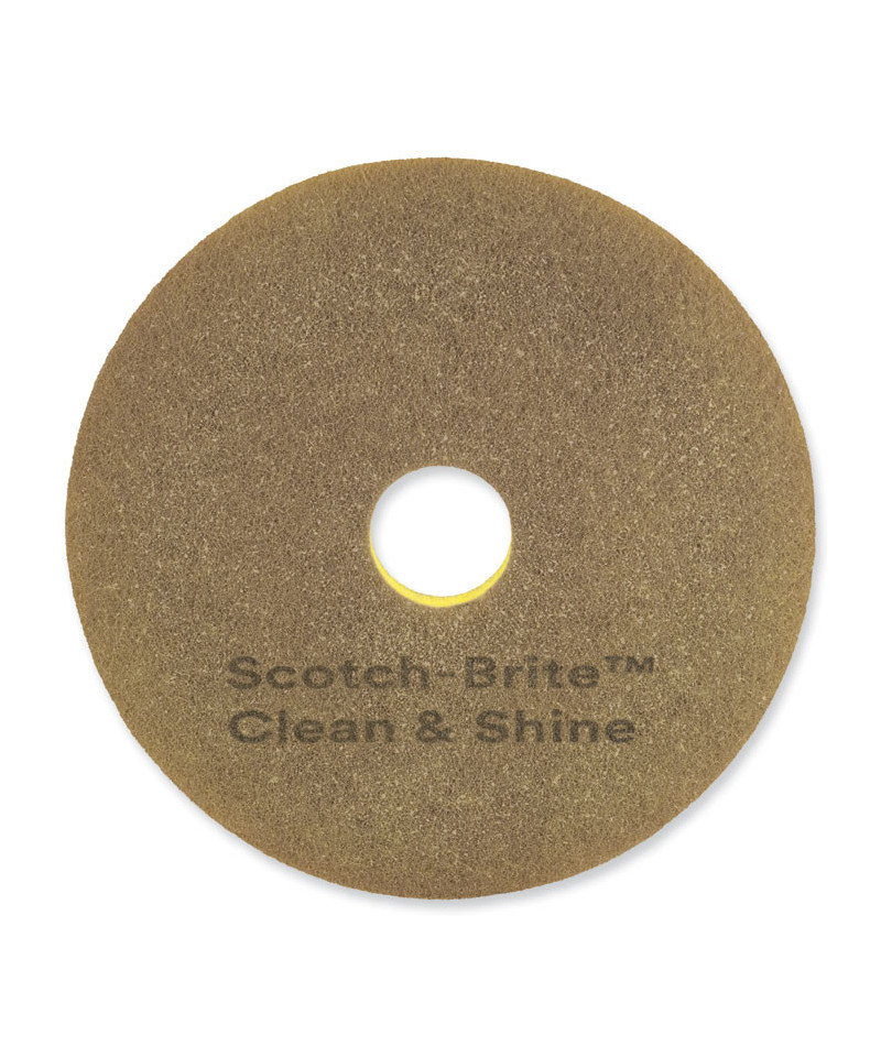 Clean and Shine Pad, 18" Diameter, Brown/Yellow, 5/Carton