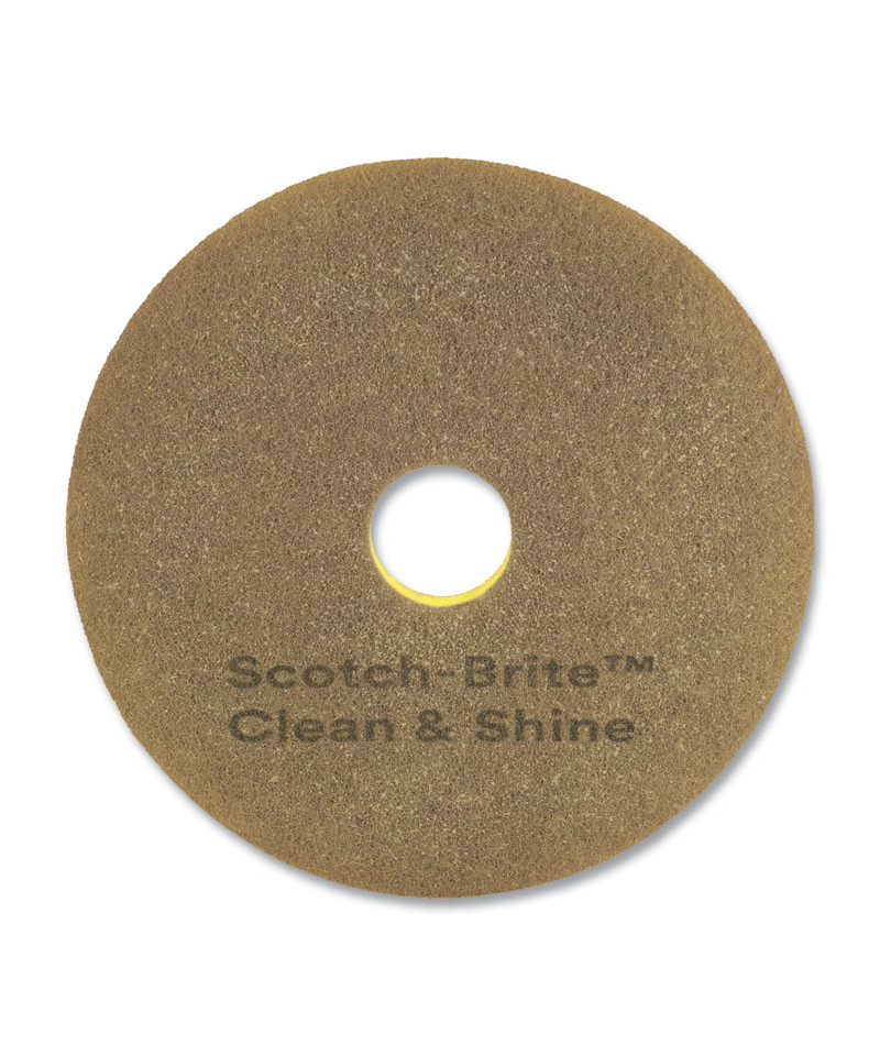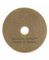 Clean and Shine Pad, 14" Diameter, Brown/Yellow, 5/Carton