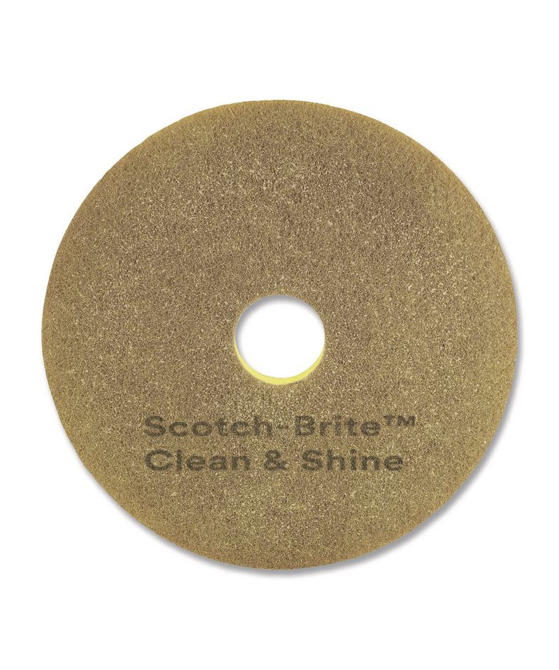 Clean and Shine Pad, 13" Diameter, Brown/Yellow, 5/Carton