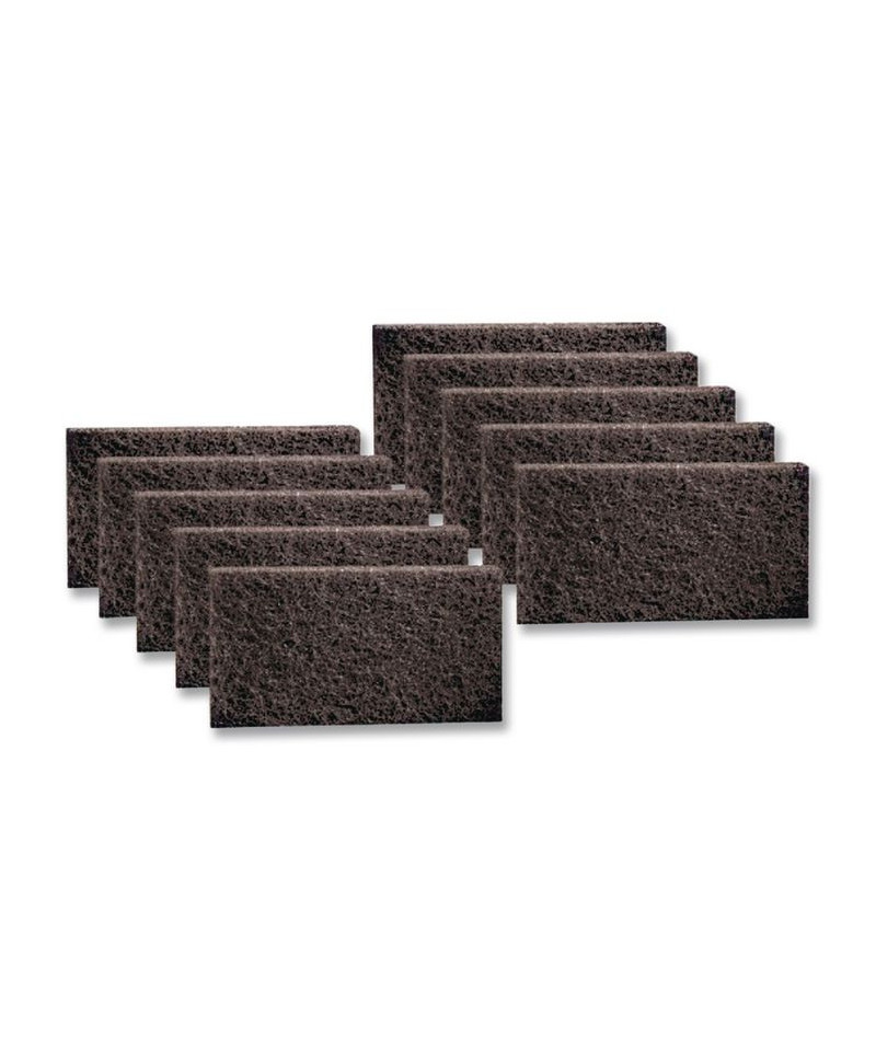 Provide greater initial cut and offer high performance throughout the life of the pad. Coarse fibers and abrasives provide aggressive stripping performance, removing two to three layers of old finish. The web of fibers is permeated throughout with a uniform coating of resin and abrasive mineral particles, consistently delivering impressive cut over the life of the pad. The pad's open-textured, non-woven construction resists clogging, allowing stripping solutions to flow through the pad. They can also be used with appropriate chemicals to clean heavily soiled hard-surface floors such as concrete.