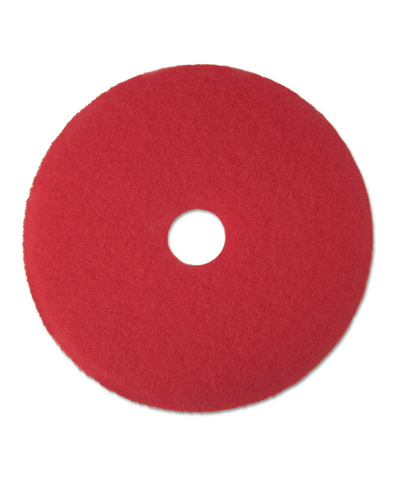 3M™ Red Buffer Pads 5100 can be used for everyday cleaning, remove light soil, scuff marks and black heel marks. Its regular use reduces the frequency of scrub-and-recoat operations, enhancing the appearance of your finished floors with reduced labor and materials costs. Fibers throughout the pad are uniformly coated with a high-quality resin and fine cleaning particles, providing good performance throughout the pad's long life. Open-web construction means this washable, reusable pad resists clogging and loading. Conformable fibers provide maximum pad-to-floor contact. Pads are reversible. For rotary swing machines and automatic floor machines running at low speed (175 to 600 rpm).