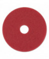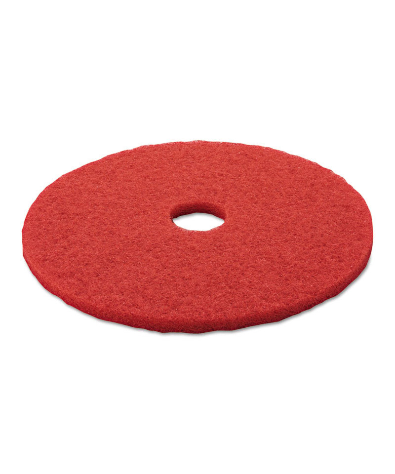 3M™ Red Buffer Pads 5100 can be used for everyday cleaning, remove light soil, scuff marks and black heel marks. Its regular use reduces the frequency of scrub-and-recoat operations, enhancing the appearance of your finished floors with reduced labor and materials costs. Fibers throughout the pad are uniformly coated with a high-quality resin and fine cleaning particles, providing good performance throughout the pad's long life. Open-web construction means this washable, reusable pad resists clogging and loading. Conformable fibers provide maximum pad-to-floor contact. Pads are reversible. For rotary swing machines and automatic floor machines running at low speed (175 to 600 rpm).