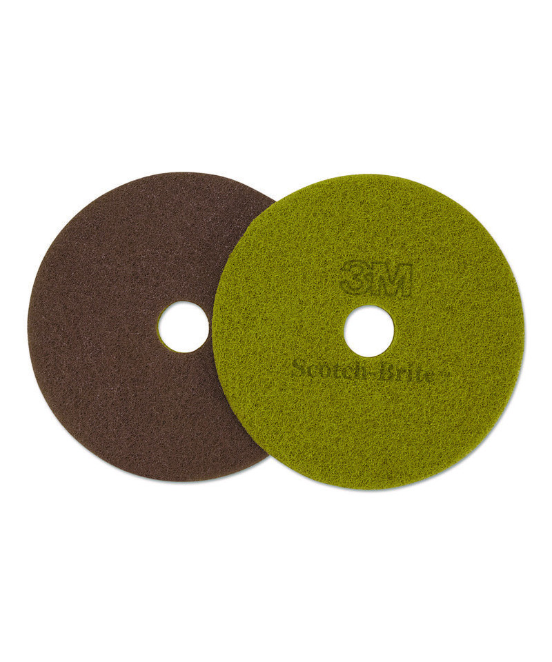 These diamond-coated floor pads clean and condition worn and dull floors. They are useful on a variety of floors including marble, terrazzo, slate, and polished concrete. They create a low to medium gloss.