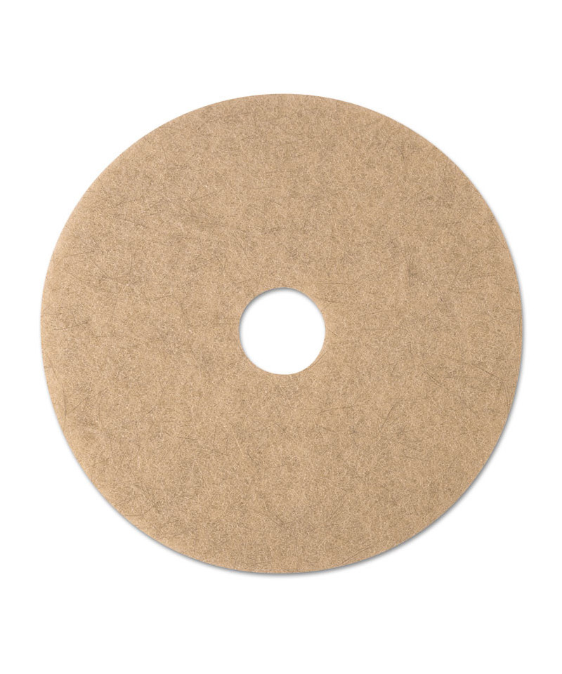 3M™ Natural Blend Tan Pad 3500 incorporates hog's hair and synthetic fibers in a construction that produces a high gloss on harder floor finishes while removing scuffs and marks. The open-textured non-woven pad resists loading and clogging. It is conformable, providing solid pad-to-floor contact. Resins and polishing particles are dispersed uniformly throughout the pad, delivering high-quality performance over the life of the pad. For use with corded-electric, battery-electric, or propane-powered ultra-high speed floor machines operating at 1500 rpm or greater. The pad is reversible.