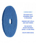 Heavy-duty scrubbing pad attaches to a rotary machine to remove dirt, spills, and scuffs. Easily scrub floors by mounting the pad onto the machine and let the powerful scrubbing pad go to work, removing heavy traffic and build-up with ease. The surface is cleaned, removed of debris, and ready for recoating if needed. For use with Rotary Machine Speed of 175 to 600 RPM. Color-coded for easy job identification.