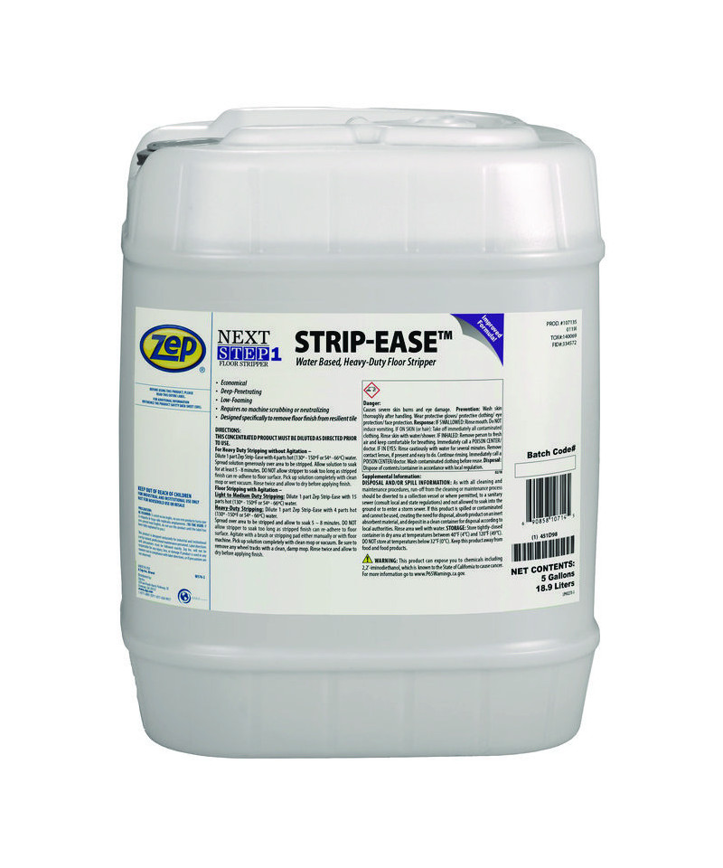 Strip-Ease is a potent, deep-penetrating stripper engineered to eliminate heavy build-ups of most floor finishes without requiring scrubbing. Its water-based formula is devoid of phosphates or irritating ammonia. With fast-acting properties, it minimizes time and labor. Easy rinsing is facilitated without the need for neutralizers in the rinse water. Additionally, it is swiftly and completely removed with a mop or wet vacuum, leaving no residue behind. Suitable for use on all flooring surfaces, especially resilient tile.
