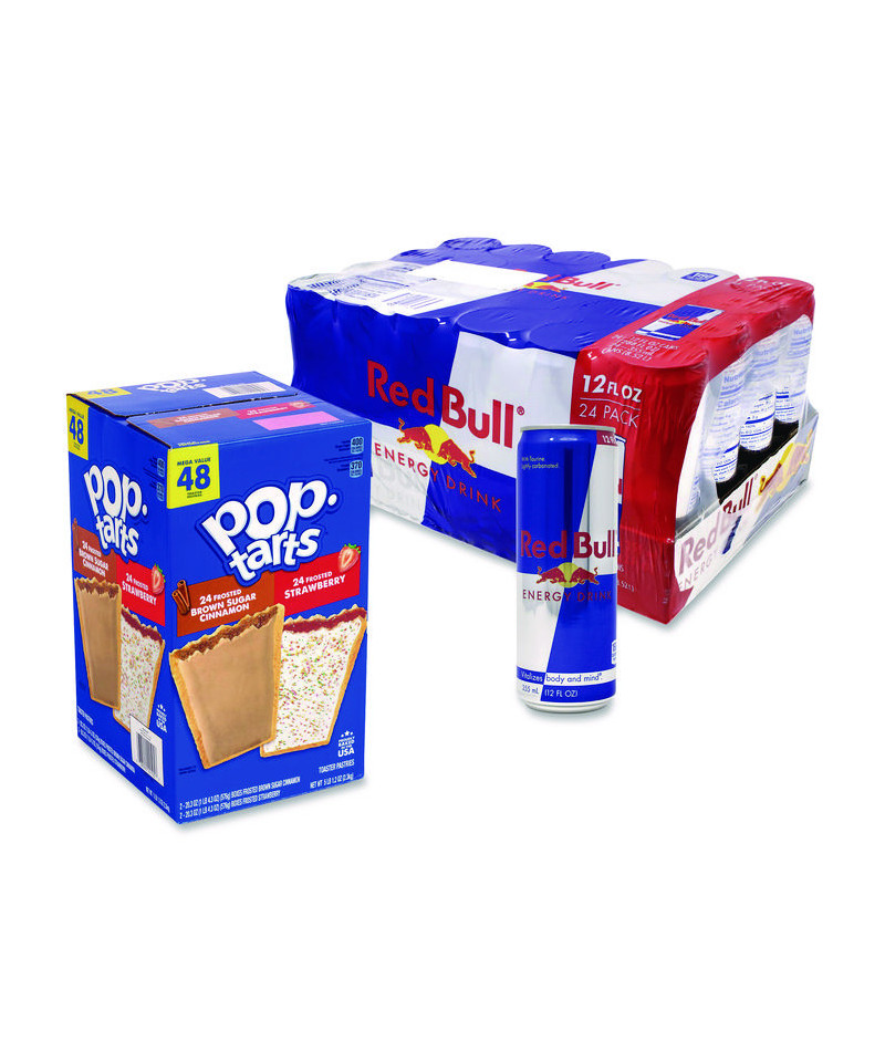 Red Bull Energy Drink formula contains high quality ingredients, including caffeine, taurine, B group vitamins and real sugars to keep you energized, and whether you like to eat them toasted, or just as is, Kellogg's Pop Tarts are packed with delicious filling and flavor! Both options are a perfect way to start your day or as a midday snack!