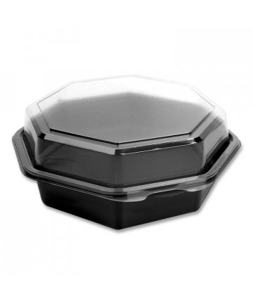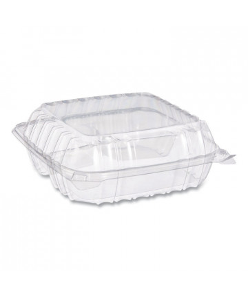 Hinged containers offer increased value and affordable alternatives to foam and paper clamshells. Will withstand temperatures to 210°F under heat lamps, in warming units and microwaves. The clear, anti-fog lid is vented to allow steam to dissipate, keeping food looking fresh and appealing while eliminating order errors. Stacking will not block the vents to preserve the texture of the food and the positive stack maintains the food presentation during transport. Secure snap closure ensures freshness and eliminates messy spills. Offset tabs make it easy to open and reclose. The durable, cut-resistant polypropylene allows your customers to eat right out of the container.