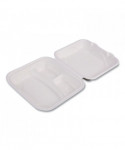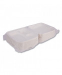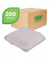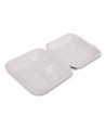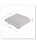 Vanguard Renewable and Compostable Sugarcane Clamshells, 3 Compartments, 9 x 9 x 3, White, 200/Carton