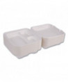 Eco-Products award-winning new line, Vanguard, is a collection of groundbreaking molded fiber clamshell containers. Vanguard products use FDA approved proprietary alternative compounds to achieve grease-resistance performance, without relying on conventional PFAS (Per- and polyfluoroalkyl substances). Made from reclaimed and rapidly renewable sugarcane fibers, this product meets BPI requirements for compostability certification. This recycled, disposable clamshell container is both hot and cold food friendly and microwave safe.