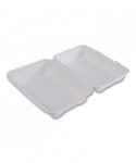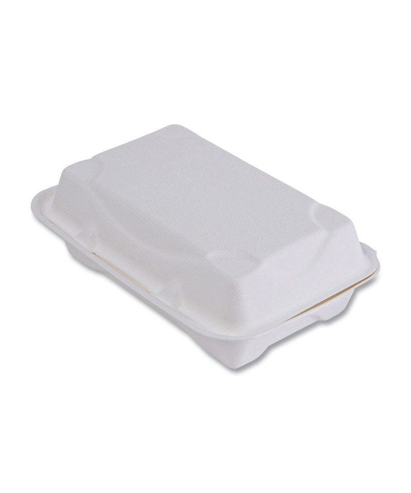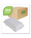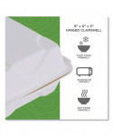 Eco-Products award-winning new line, Vanguard, is a collection of groundbreaking molded fiber clamshell containers. Vanguard products use FDA approved proprietary alternative compounds to achieve grease-resistance performance, without relying on conventional PFAS (Per- and polyfluoroalkyl substances). Made from reclaimed and rapidly renewable sugarcane fibers, this product meets BPI requirements for compostability certification. This recycled, disposable clamshell container is both hot and cold food friendly and microwave safe.