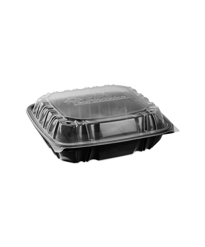 EarthChoice® vented dual-color microwavable hinged-lid containers are the perfect upscale packaging for hot, crispy, or cold food. They are top of the line containers in both appearance and performance offering multiple SmartVents™ for the operator to control the perfect amount of heat retantion or steam to escape. The innovative ZipSeal™ closure provides leak resistance for worry free take out and delivery. They are top rack dishwasher safe and reusable!