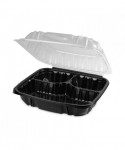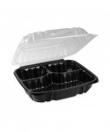 EarthChoice Vented Dual Color Microwavable Hinged Lid Container, 3 Compartments, 54 oz, Black/Clear, Plastic, 132/Carton