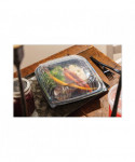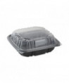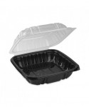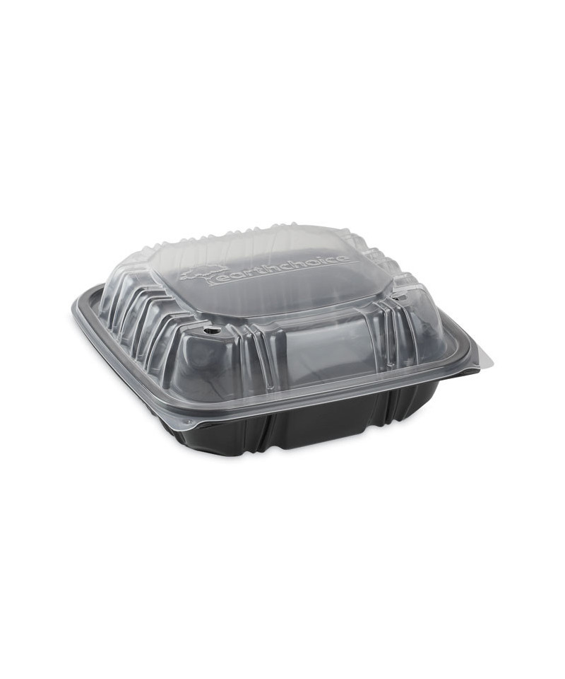 EarthChoice Vented Dual Color Microwavable Hinged Lid Container, 38 oz, 8.5 x 8.6 x 3.1, Black/Clear, Plastic, 150/Carton