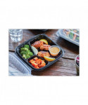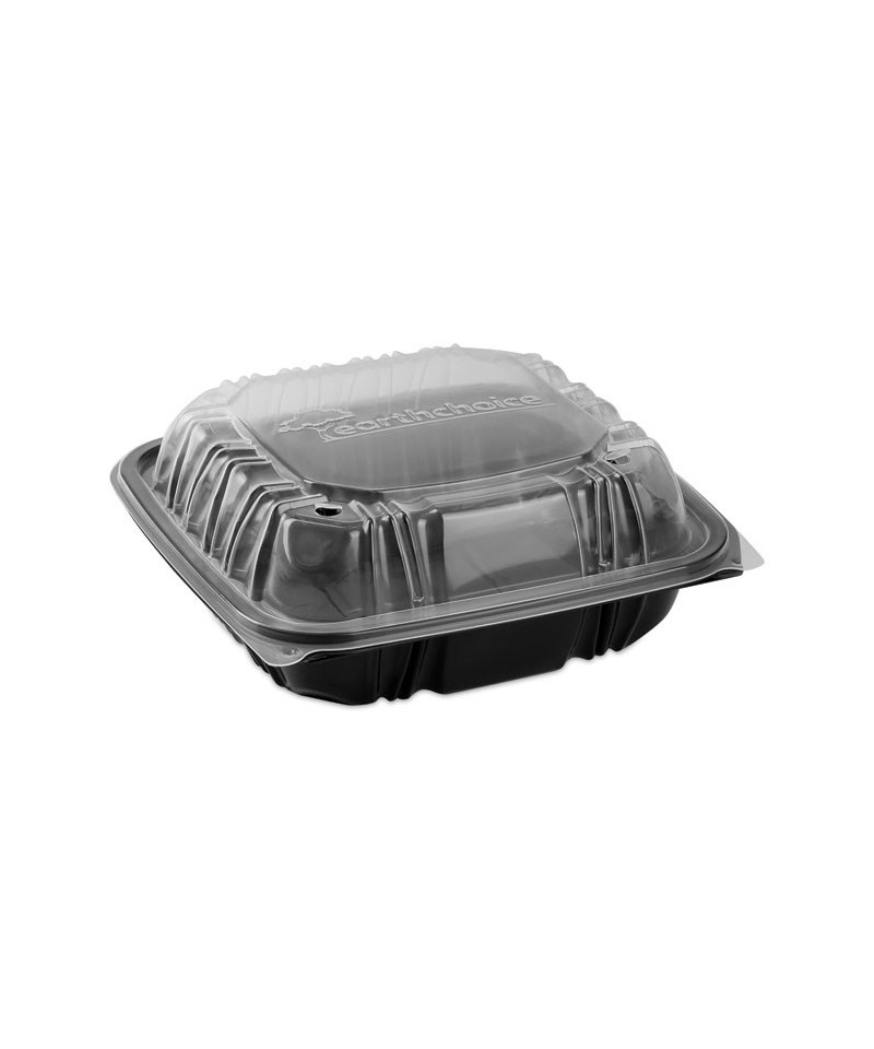 EarthChoice® vented dual-color microwavable hinged-lid containers are the perfect upscale packaging for hot, crispy, or cold food. They are top of the line containers in both appearance and performance offering multiple SmartVents™ for the operator to control the perfect amount of heat retantion or steam to escape. The innovative ZipSeal™ closure provides leak resistance for worry free take out and delivery. They are top rack dishwasher safe and reusable!