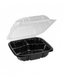 EarthChoice Vented Dual Color Microwavable Hinged Lid Container, 3 Compartments, 33 oz, Black/Clear, Plastic, 150/Carton