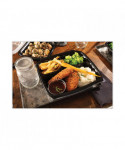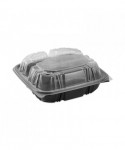 EarthChoice® vented dual-color microwavable hinged-lid containers are the perfect upscale packaging for hot, crispy, or cold food. They are top of the line containers in both appearance and performance offering multiple SmartVents™ for the operator to control the perfect amount of heat retantion or steam to escape. The innovative ZipSeal™ closure provides leak resistance for worry free take out and delivery. They are top rack dishwasher safe and reusable!